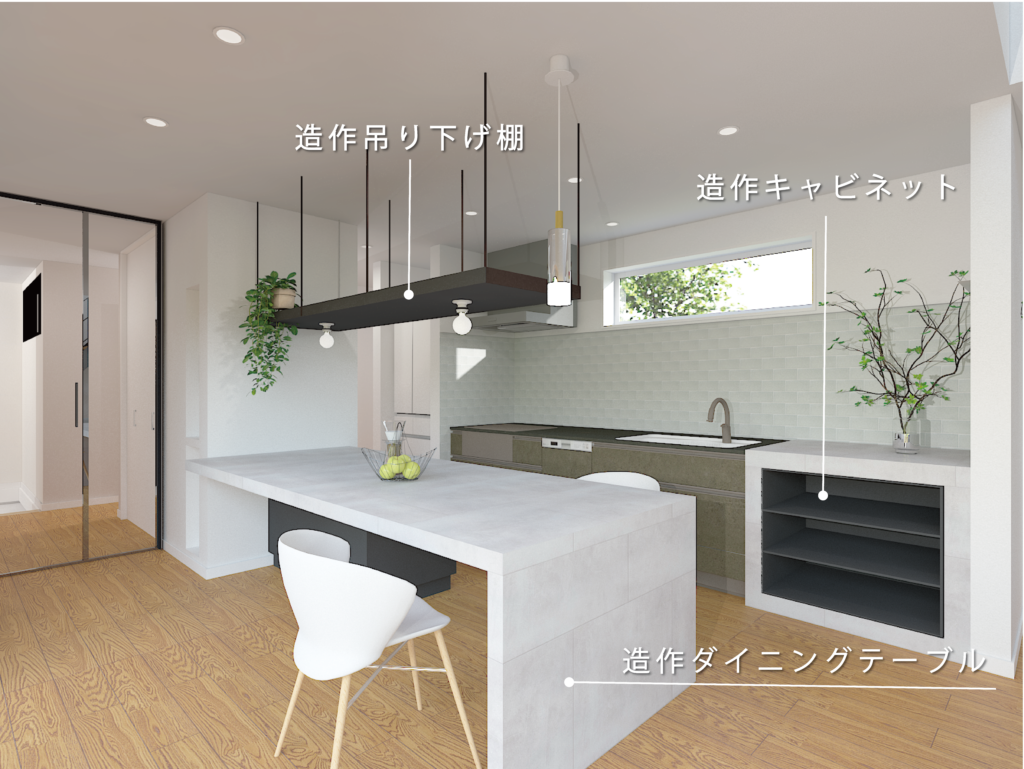 モデルハウス発想の造作キッチンダイニング